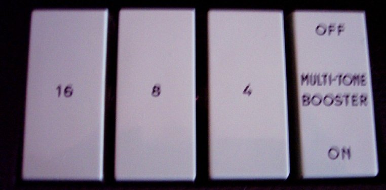 "The black "chords" tab is for making the lowest octave of the keyboard play single bass notes instead of the combination of 16' 8' 4' ́ and vibrato settings you've skillfully applied. The thing is though, that it won't play the 16' plays 8' !!! so if you only have 16' on and "chords" on, you will get two octaves of identical notes (same octave)."