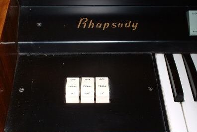 The Foyer appears to be a basic Mini-Compact, built into a spinet cabinet, with amp and speakers. - look at the panel - it's pretty much identical to the Mini. Click on the picture below to go to a web site with much more information. It's got Reverb, but is missing the Vibrato Heavy/Light tab (like the Mini-Deluxe), and does not have the selectable octave of grey keys. Instead, it has a "Chords" tab. I'll let Jonas Petrini explain: