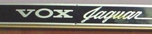 Model V304/E2: Flat rocker tabs, Contour control, black "Vox Jaguar" nameplate. Most Jaguars are of this type Produced around 1967 and later. These were manufactured by EME, which is probably what the "E" stands for. On some of these, the paper id tag on the inside says the model number is V304E. Also, on many of the metal ID badges, it looks like the "E2" part has been pasted on.